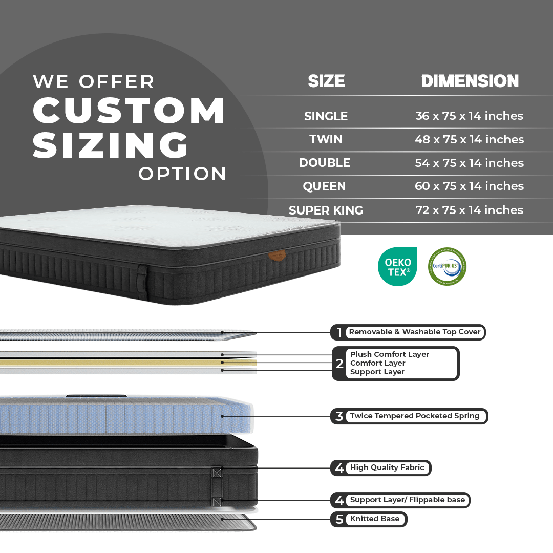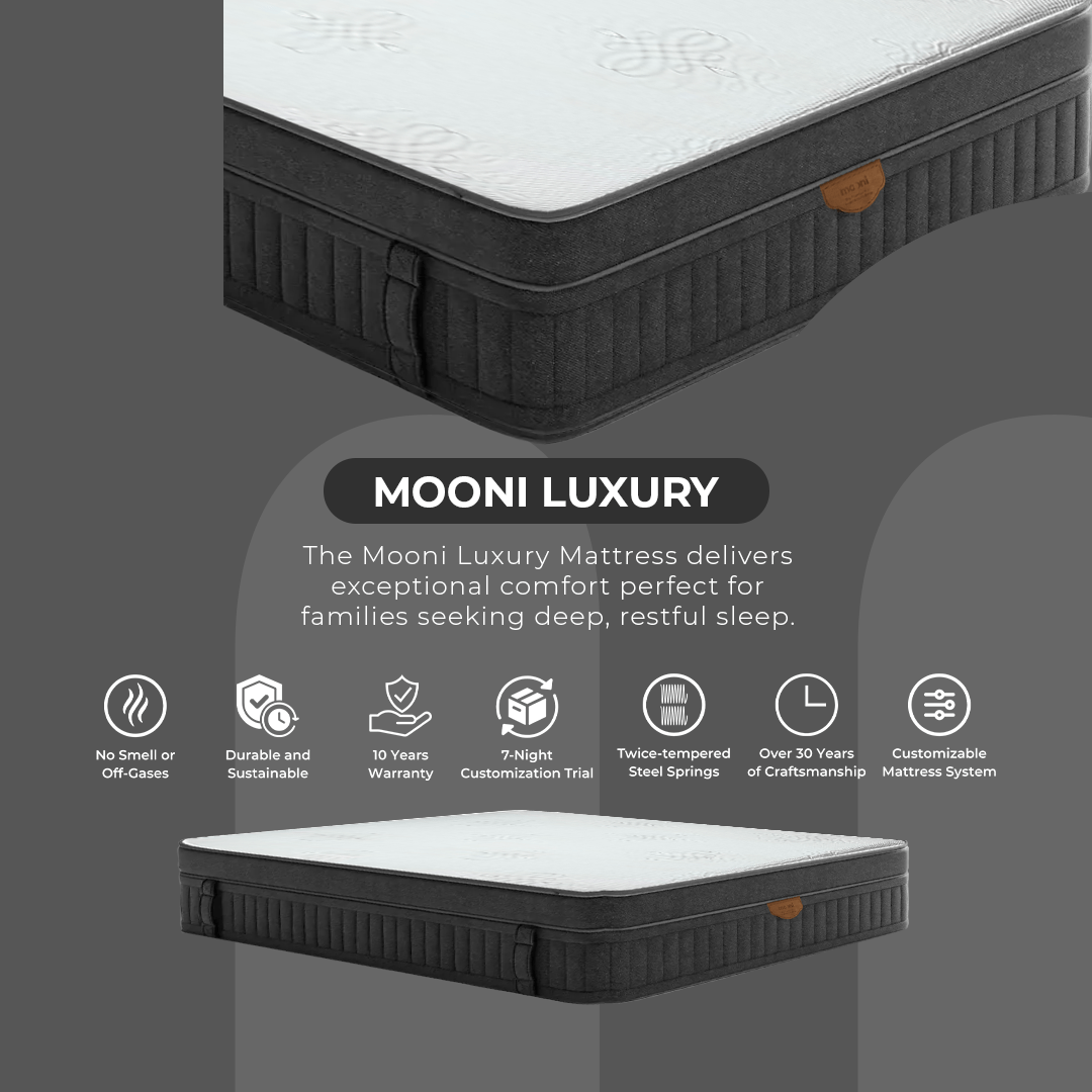 Mooni Luxury Mattress: Customizable Comfort, Dual-Sided Versatility.